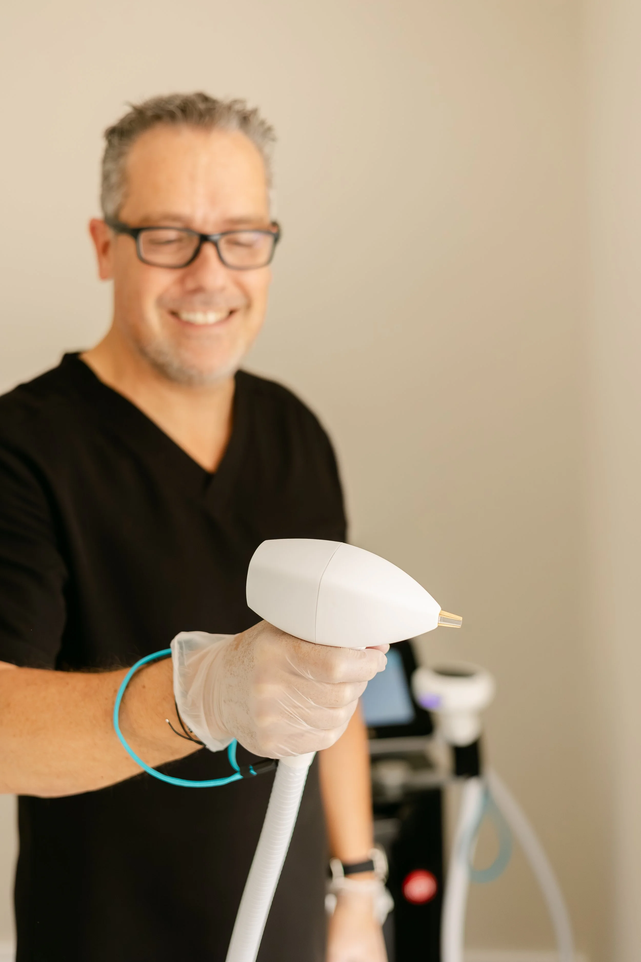 The vasculaze hand piece delivers focused laser energy directly into the blood vessel. The heat causes the vein walls to collapse and be reabsorbed by the body over time. Because it